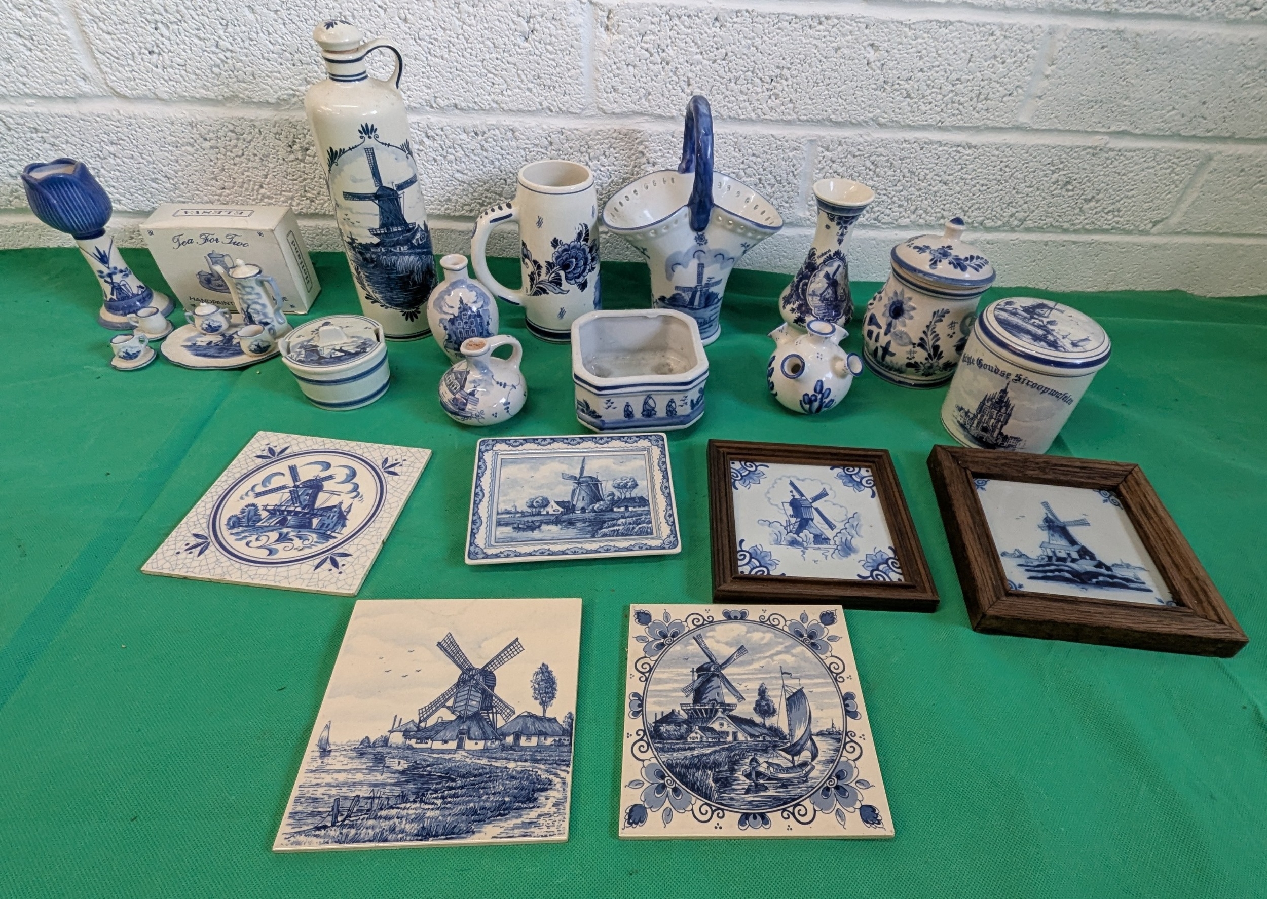Delftware Collection Including Tiles, Vases, Candleholders, Trinket Pots, And Much More